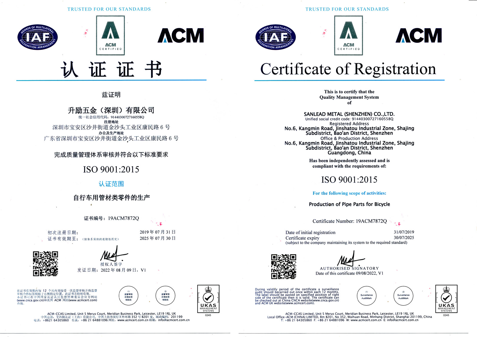 通過ISO9001。